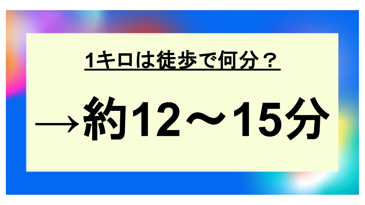 一般的な歩行速度で1キロを歩く場合、約12~15分程度が標準的な目安となります。