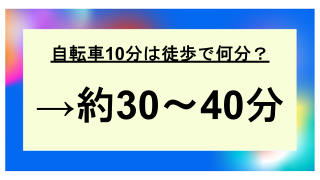 「自転車の時間×3〜4倍=徒歩の目安時間」という比率を使えば素早く換算できます。
