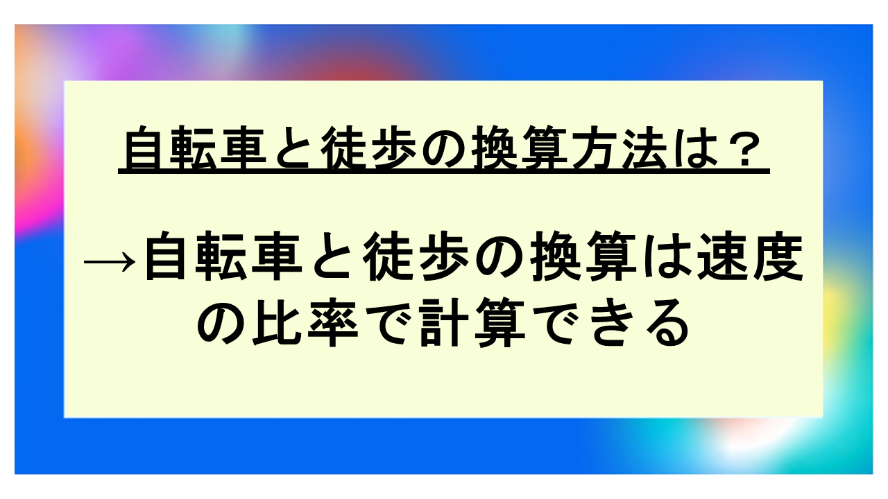 また、換算はどちらの方向(自転車→徒歩、徒歩→自転車)からでも同じ比率を応用できるため、覚えておくと非常に便利です。